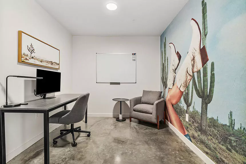 Pro tip: if you want to set up a workspace with a monitor and whiteboard, book one of our Digital Nomad Suites which includes a flex space.