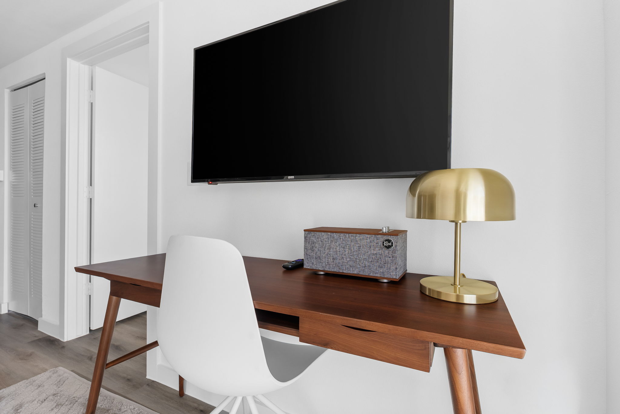 💻 Fast Wi-Fi and Bluetooth speaker, plus a dedicated desk space in select apartments