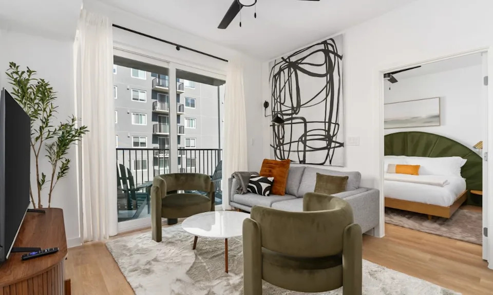 Lodgeur at Resia Ten Oaks offers fully furnished one-, two-, and three-bedroom apartments starting at $89 per night on extended stays of 30+ nights. Lodgeur is the exclusive provider of flexible stays at this location with a two-night minimum for short-term rentals. Lodgeur furnished apartments feature carefully curated designer furnishings – chosen for style, comfort, and function – and include chef-ready, fully equipped kitchens, in-unit washer/dryers, and hotel-style amenities.