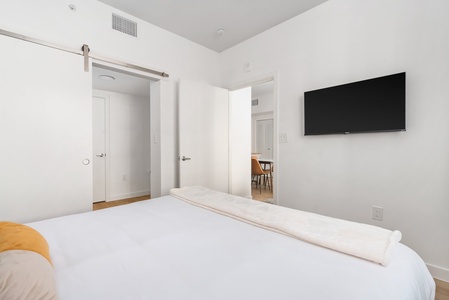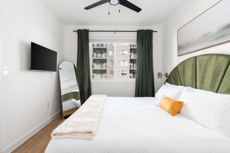 Unwind and recharge in this snug bedroom featuring a supportive memory foam mattress and a smart TV.