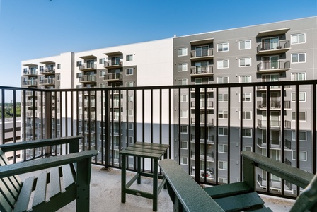 • East-facing apartment with balcony and patio furniture