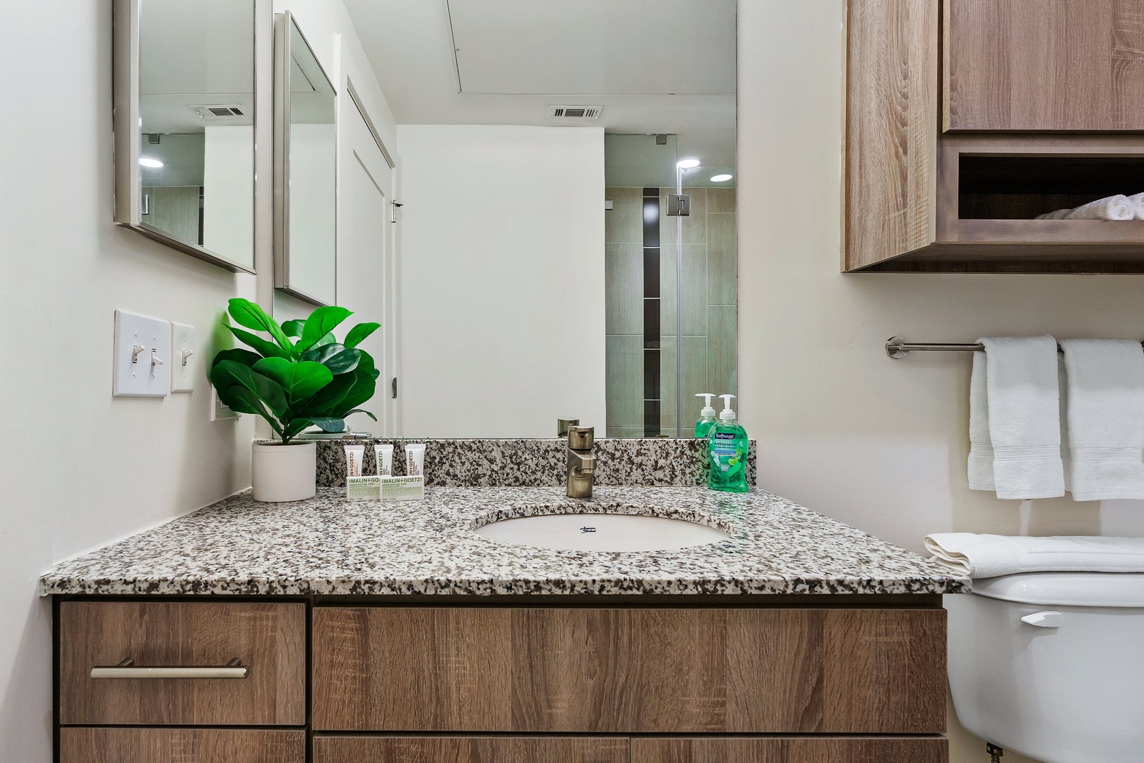 You will be staying in a private apartment (a 557 SF studio on the 6th floor), so you’ll have the space to yourself. You’ll be able to pick up your keys 24/7/365 with our self-check-in process once you’ve completed our guest verification process with your government photo ID.