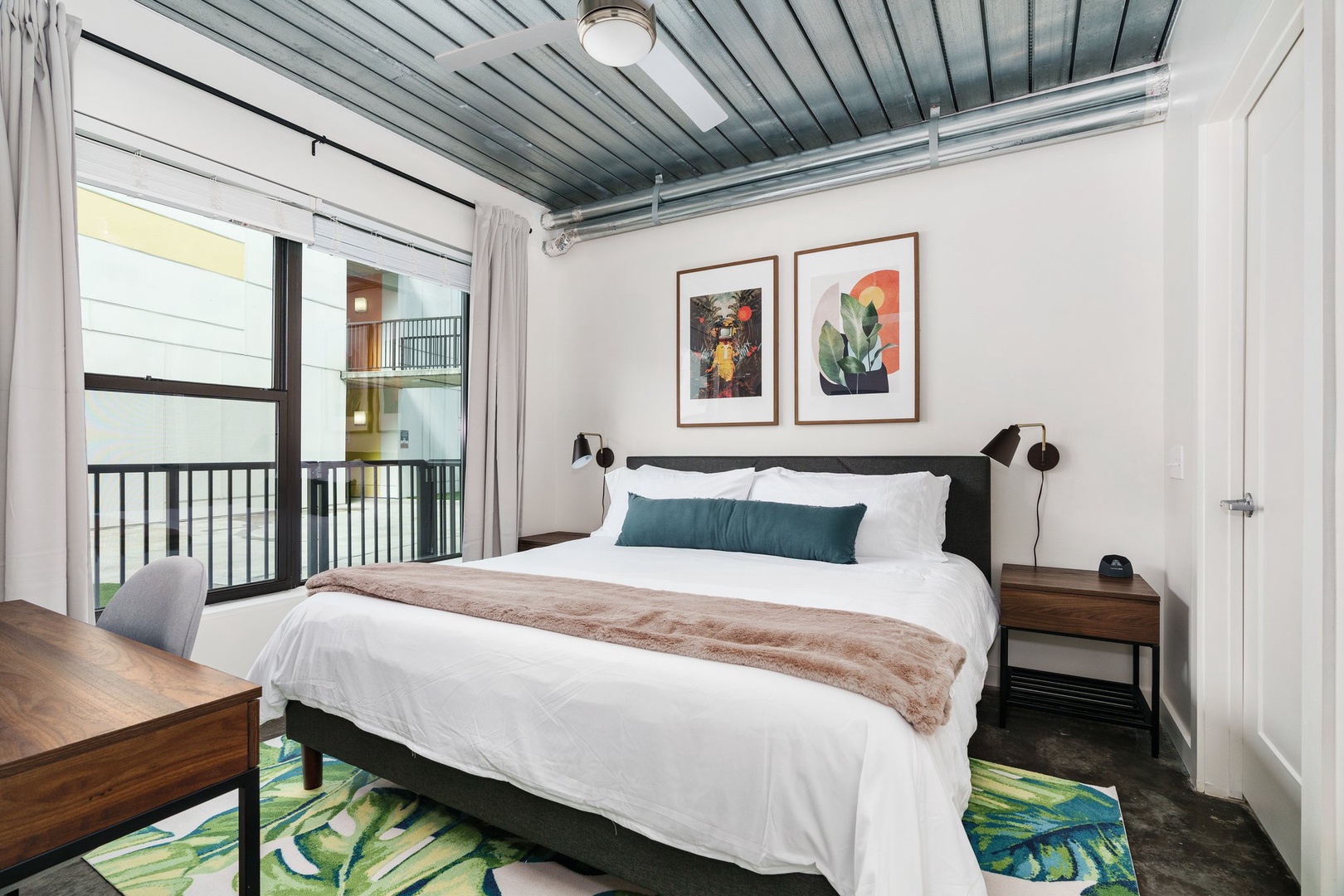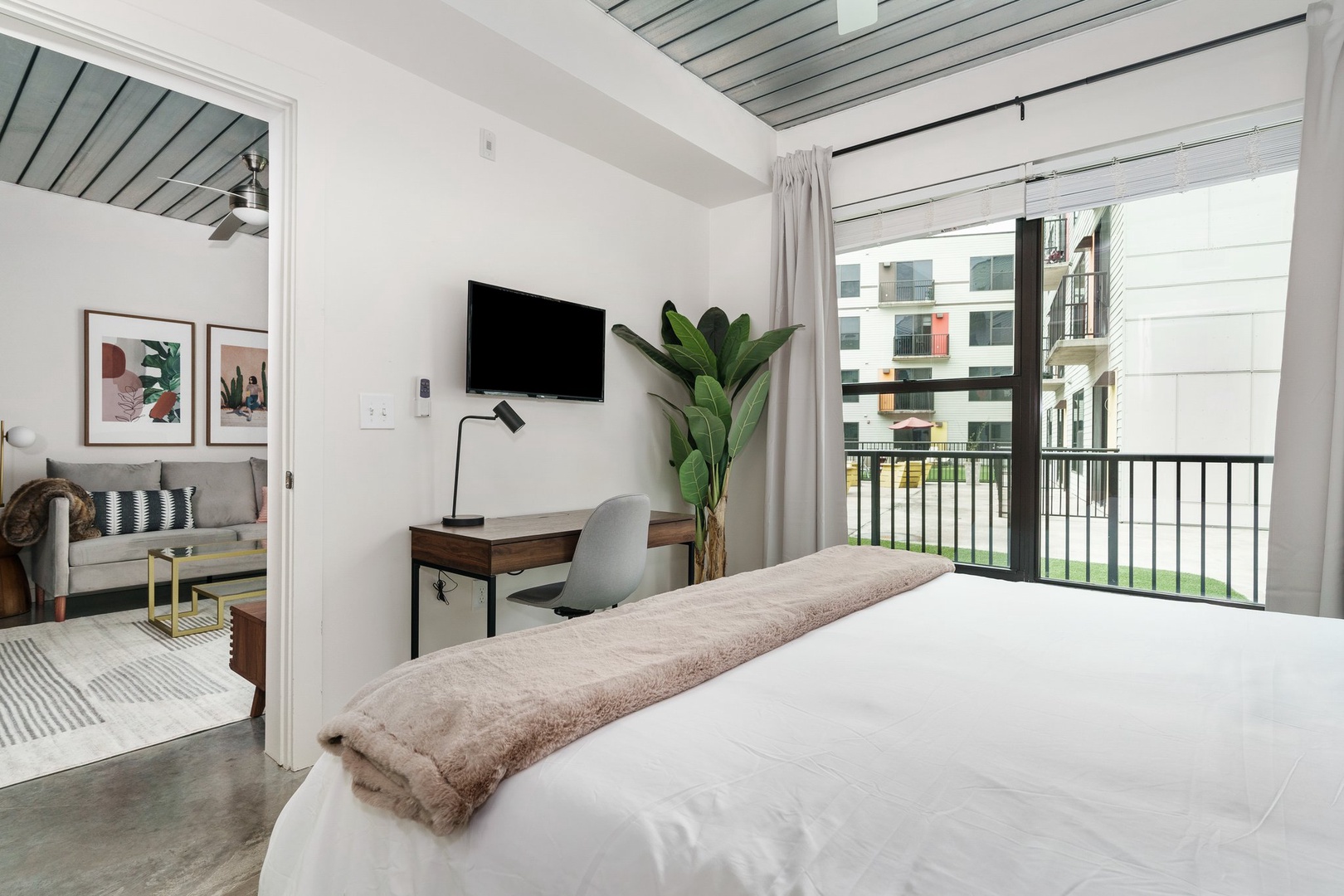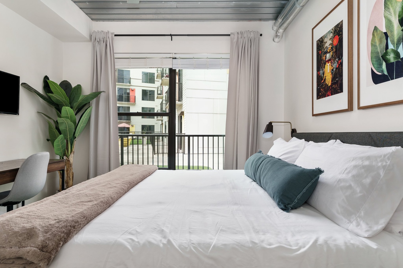 Welcome to Lodgeur at Mid Main Lofts! This trendy apartment community is in the heart of Midtown, Houston’s most walkable neighborhood. There are dozens of bars and restaurants on your doorstep and a METRORail station (3 stops to the Texas Medical Center or Downtown). This 6th-floor furnished 1BR apartment (576 SF) is perfect for short and extended stays, featuring a fully-equipped kitchen, washer/dryer, and a workspace with fast WiFi. Onsite, there’s free parking, a pool, and a 24/7 gym.