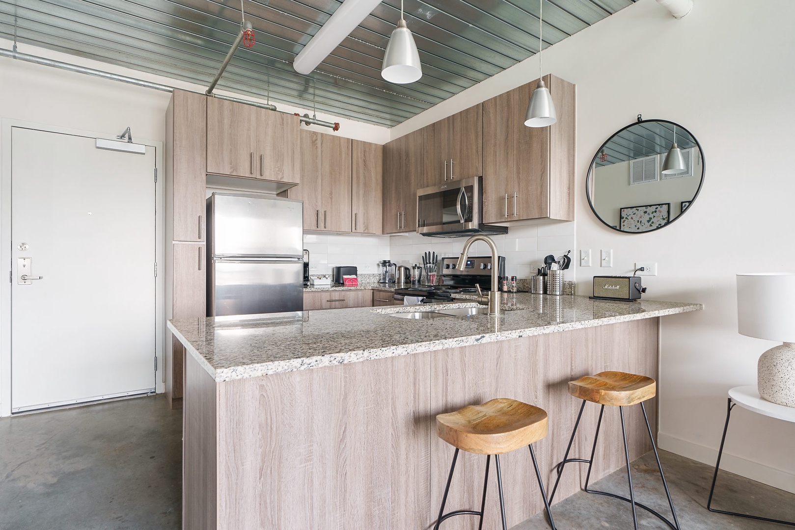 Welcome to Lodgeur at Mid Main Lofts! This trendy apartment community is in the heart of Midtown, Houston’s most walkable neighborhood. There are dozens of bars and restaurants on your doorstep and a METRORail station (3 stops to the Texas Medical Center or Downtown). This 7th-floor furnished 1BR apartment (576 SF) is perfect for short and extended stays, featuring a fully-equipped kitchen, washer/dryer, and a workspace with fast WiFi. Onsite, there’s free parking, a pool, and a 24/7 gym.