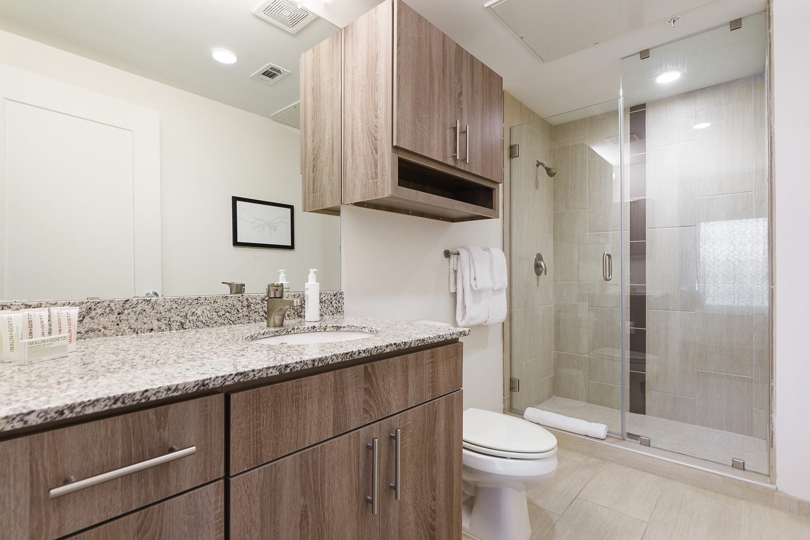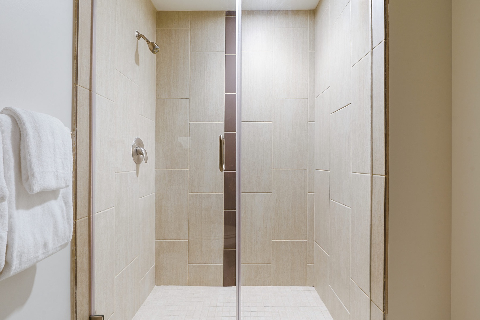 - Freshen up in a spacious bathroom with ample storage and a walk-in shower, MALIN+GOETZ toiletries, plush bath towels, pool towels, a hairdryer, and hair straightener / flat iron