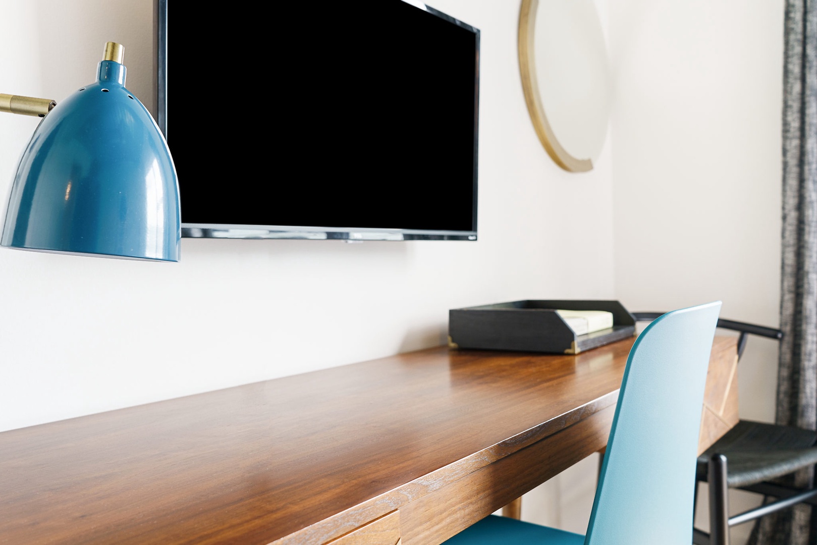 - Work remotely with a desk, task lamp, office chair, and fast fiber internet WiFi (50+ Mbps)