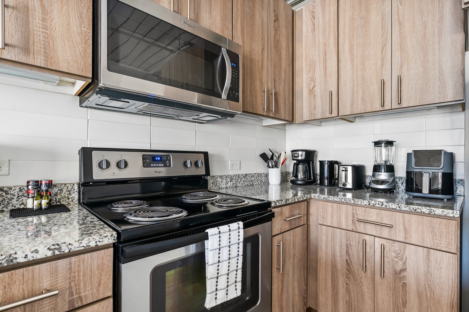 - Cook a meal in our fully equipped kitchens, which include a coffee maker, electric kettle, toaster, blender, rice cooker, Crockpot slow cooker, tri-ply cookware, bakeware, and more ready for use! Appliances include a stovetop, oven, fridge freezer, dishwasher, and a microwave