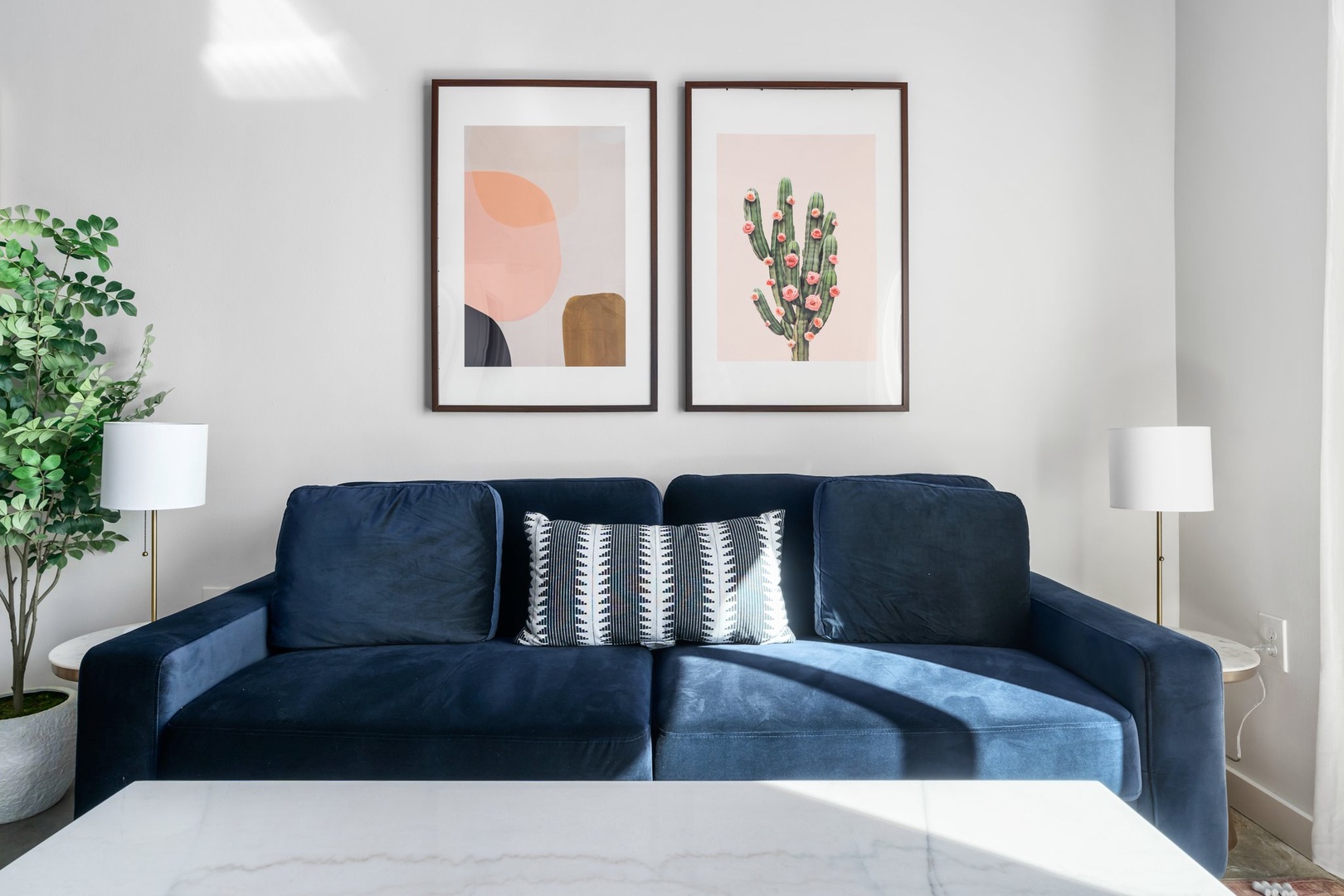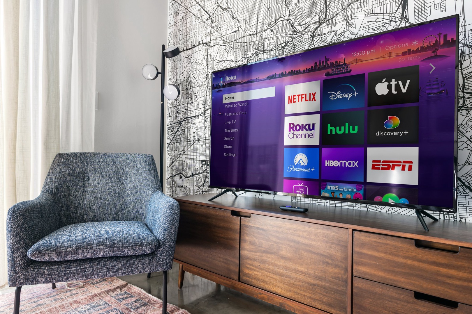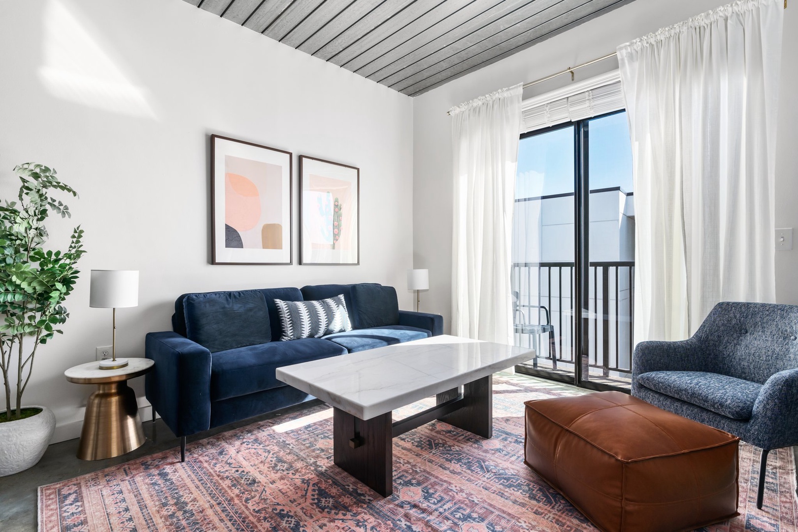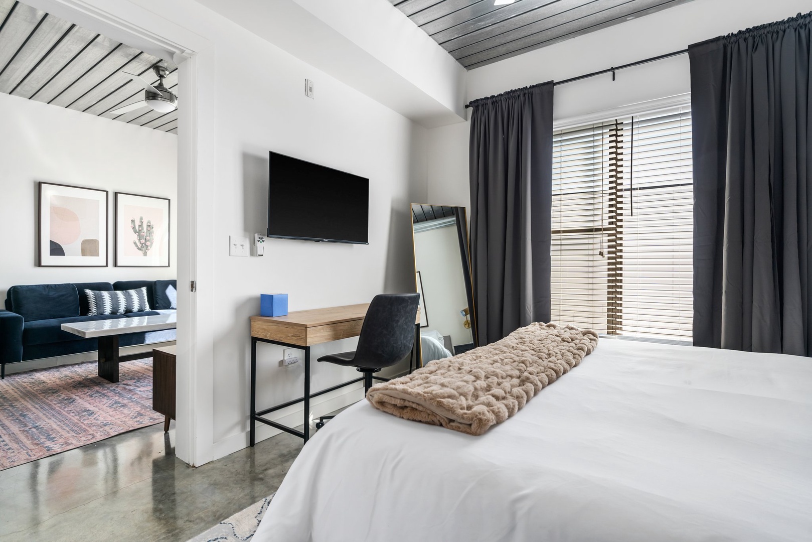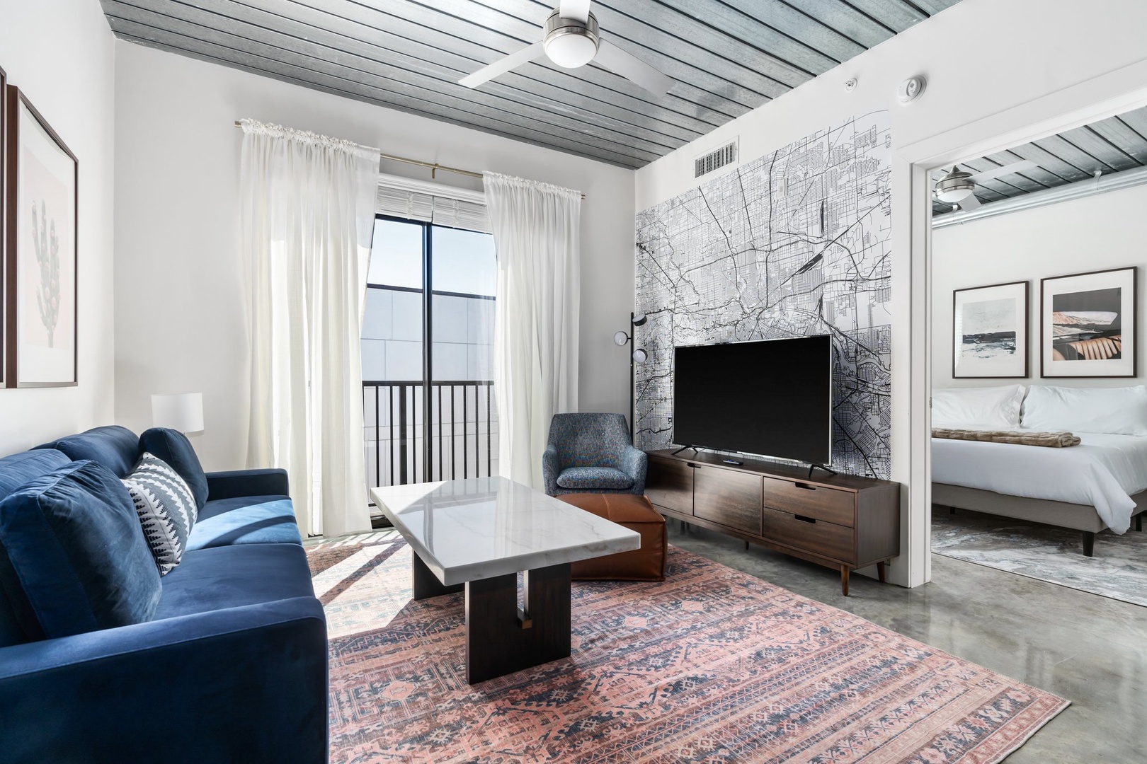 Snuggle in and enjoy the smart TV experience in this chic and comfortable modern living area.