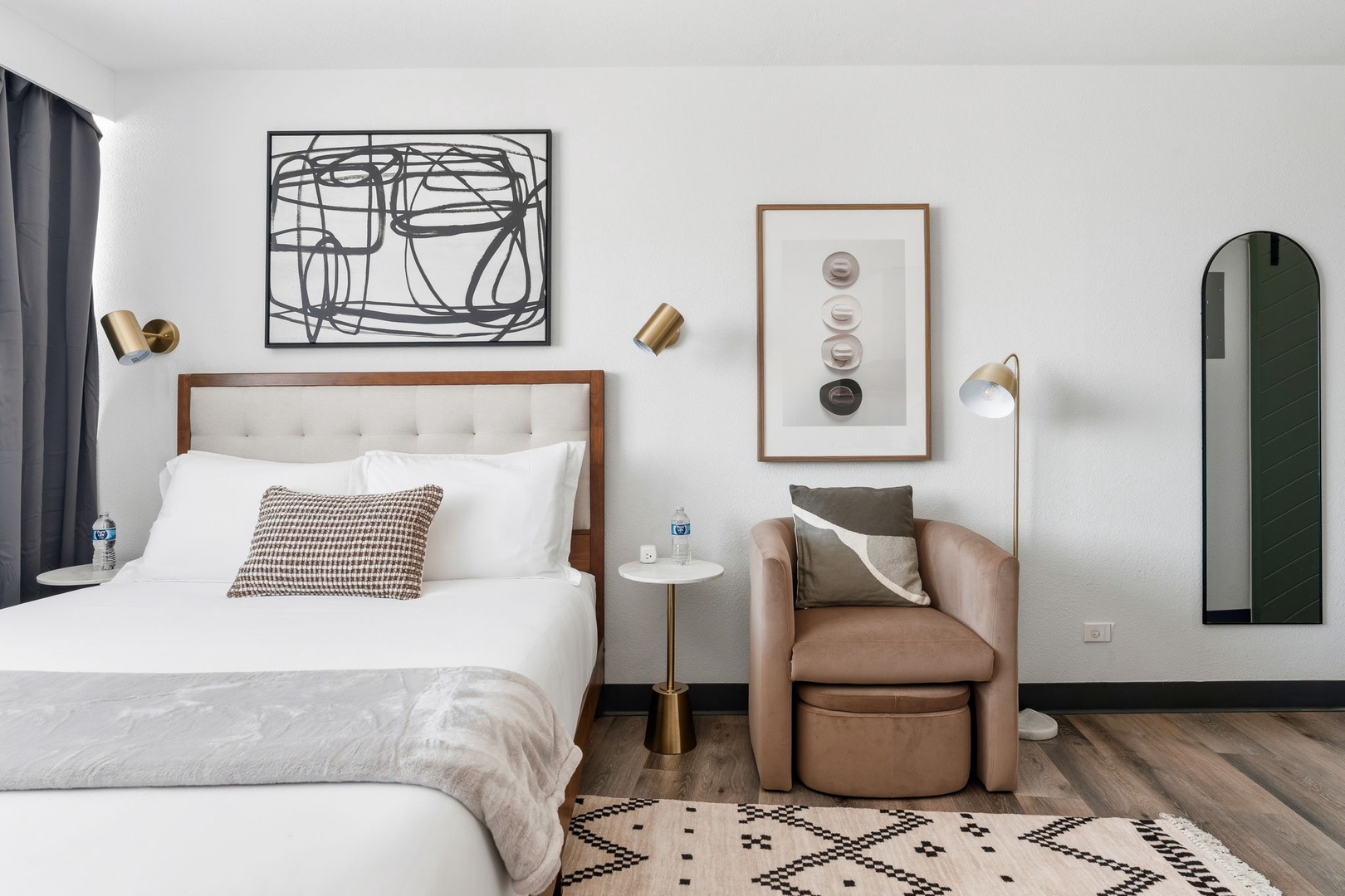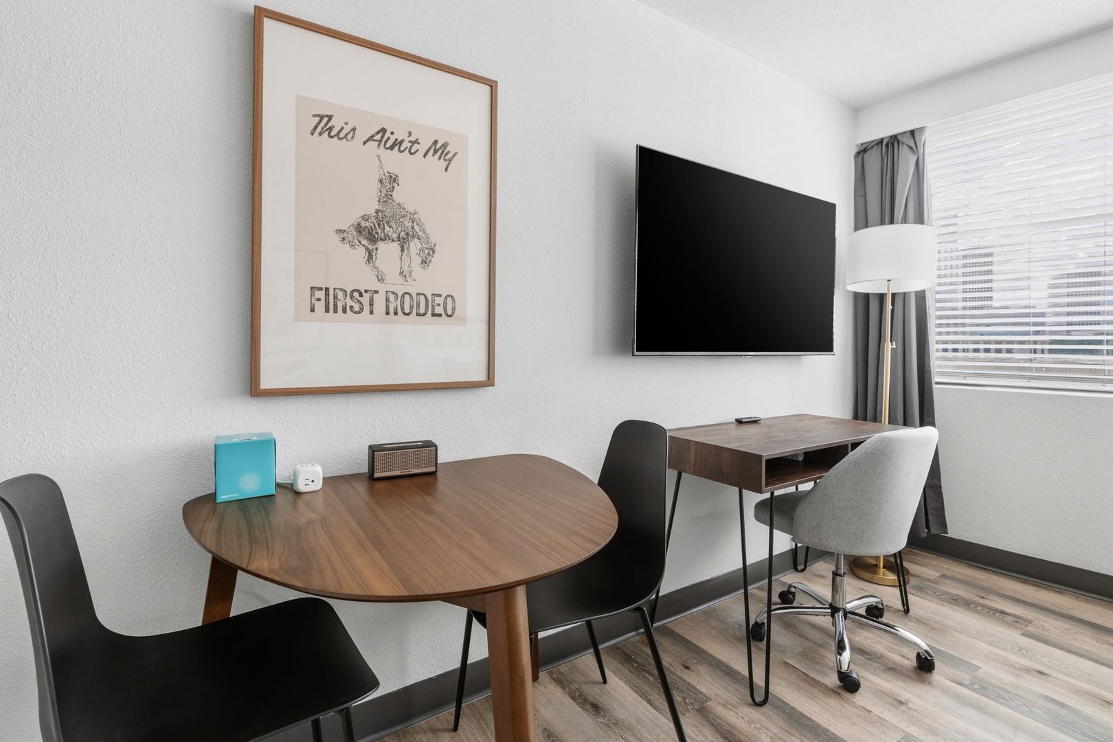 Stylish, comfortable, and thoughtfully furnished studio (329 SF, 3rd floor) at Lodgeur Upper Kirby. Enjoy a chef-ready kitchen, fast WiFi, shared laundry just down the hall, and access to a pool and 24/7 gym. Designed for both short and extended stays. Steps from Levy Park and local dining. Near Greenway Plaza, the Galleria, Montrose, Rice, the Texas Medical Center, Midtown, and Downtown Houston.