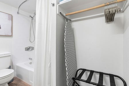 • Bathroom with shower/tub combo, MALIN+GOETZ toiletries, plush towels, hairdryer, and straightener