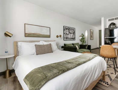 Stylish, comfortable, and thoughtfully furnished studio (349 SF, 3rd floor) at Lodgeur Upper Kirby. Enjoy a chef-ready kitchen, fast WiFi, shared laundry just down the hall, and access to a pool and 24/7 gym. Designed for both short and extended stays. Steps from Levy Park and local dining. Near Greenway Plaza, the Galleria, Montrose, Rice, the Texas Medical Center, Midtown, and Downtown Houston.