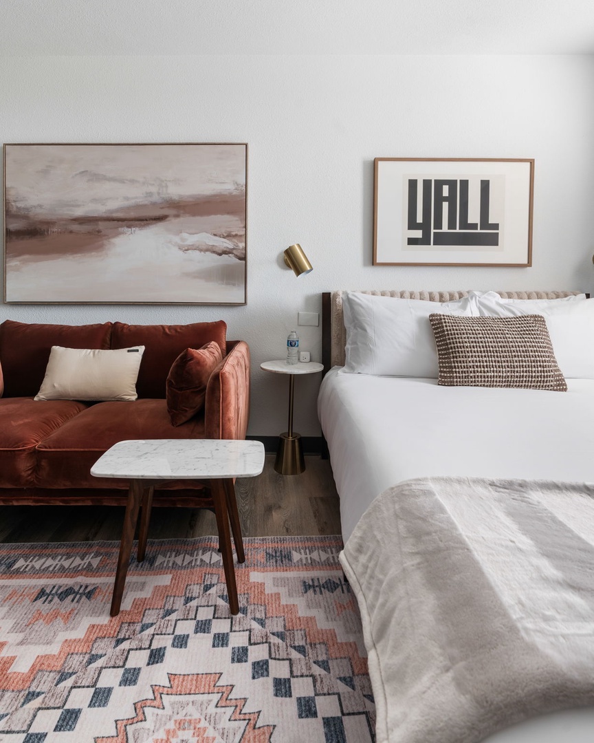 Stylish, comfortable, and thoughtfully furnished studio (367 SF, 3rd floor) at Lodgeur Upper Kirby. Enjoy a chef-ready kitchen, fast WiFi, shared laundry just down the hall, and access to a pool and 24/7 gym. Designed for both short and extended stays. Steps from Levy Park and local dining. Near Greenway Plaza, the Galleria, Montrose, Rice, the Texas Medical Center, Midtown, and Downtown Houston.