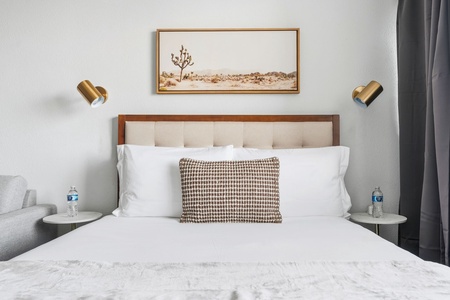 • Bathroom with shower/tub combo, MALIN+GOETZ toiletries, plush towels, hairdryer, and straightener
